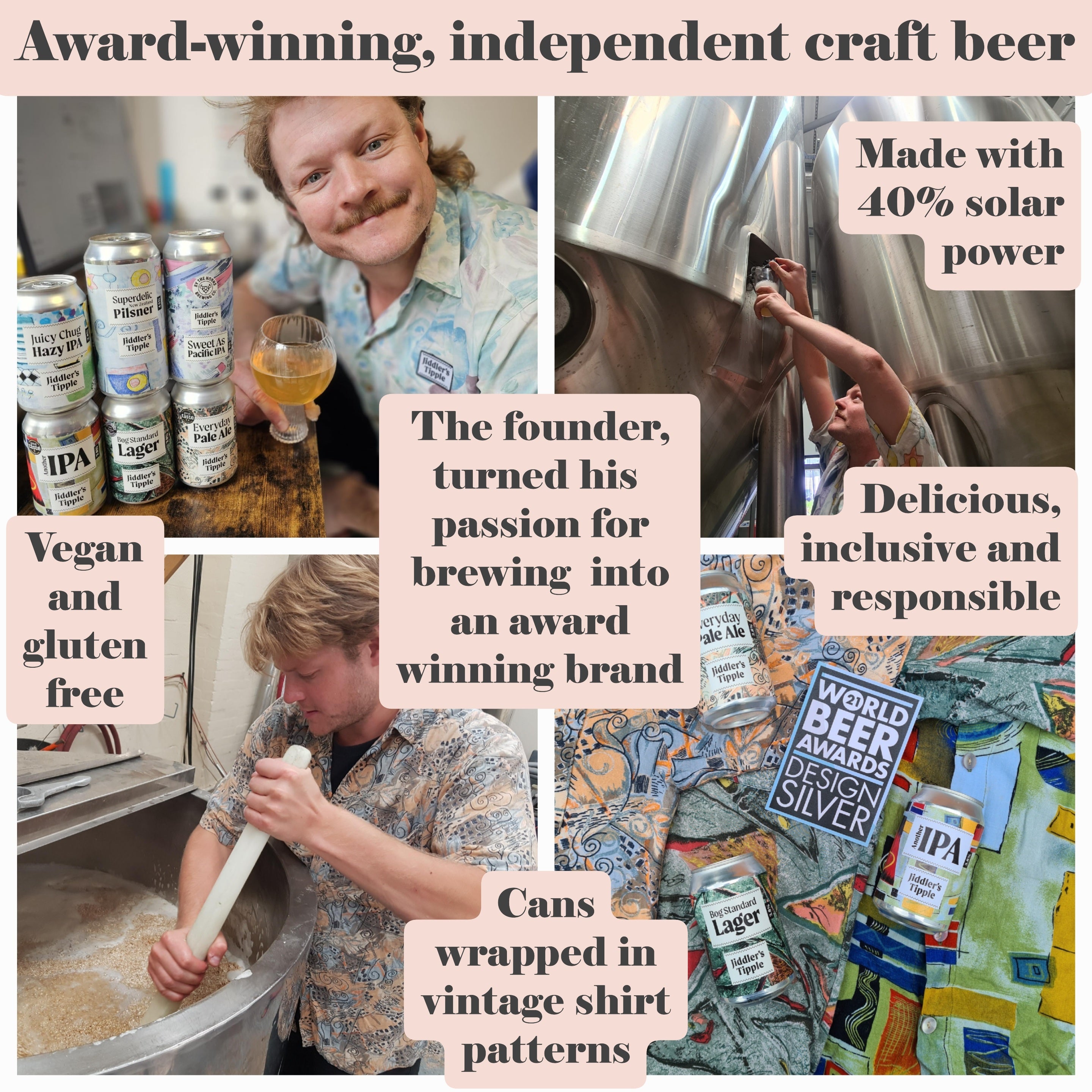 At Jiddler's Tipple we make inclusive, delicious and eco-friendly beer. Our beers are vegan 🌱, gluten free 🚫🌾, made with 40% solar power ☀️ and carbon negative 🌎.
