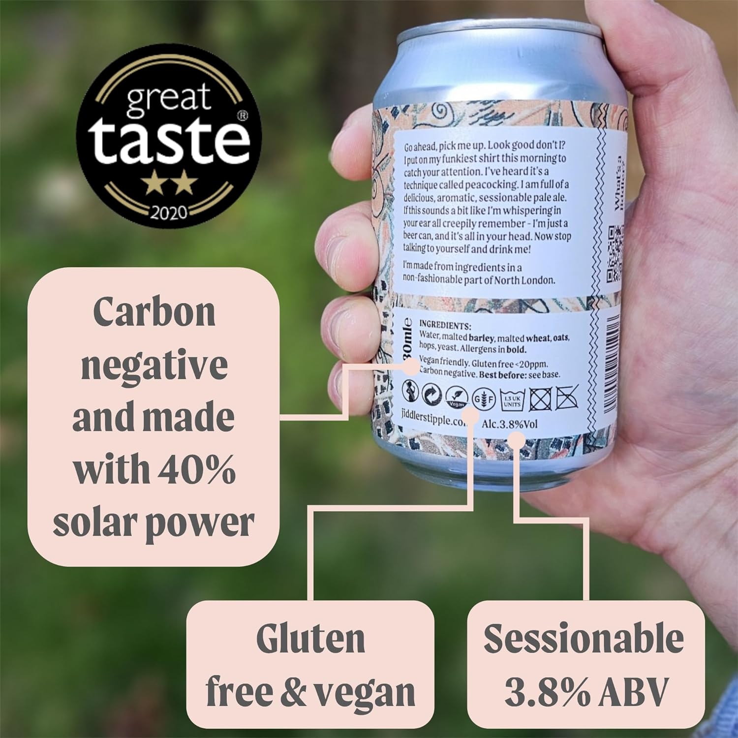 This beer is vegan 🌱, gluten free 🚫🌾 , made with 40% solar power ☀️ and carbon negative 🌎