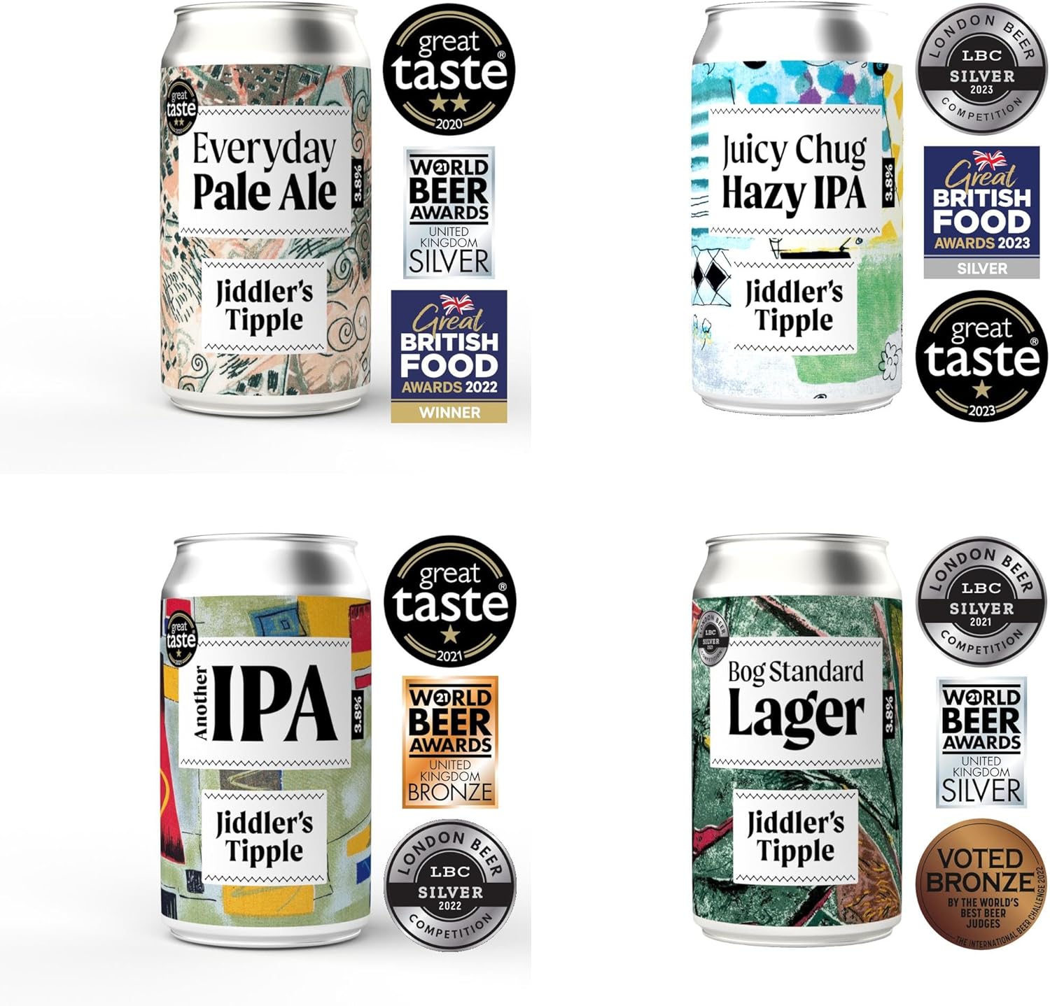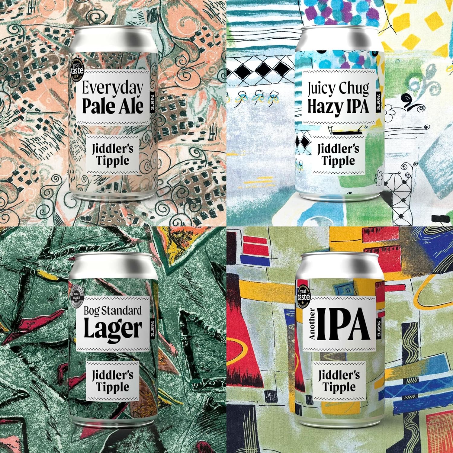 Jiddler's Tipple - Variety Pack - Craft IPA, Lager & Pale Ale Gift Set - 3.8% ABV Craft Beer Cans - Vegan Gluten Free Beer - 4 x 330ml